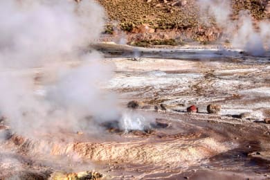 At 04:30 am our local guide will pick you up from the hotel to visit the Tatio Geysers. The Tatio (from Kunza "tata-iu") meaning "Grandfather who weeps" is one of the highest Geyser field in the world. It is located in the Cordillera of the Andes noth est to San Pedro de Atacama and is the largest group of geysers in the southern hemisphere and the third largest in the world, after Yellowstone (USA) and Dolina Giezerow (Russia). The maximum expression of these fumaroles begins at dawn with temperatures reaching 85° C. On our return it is possible to observe local fauna and flora such vicuñas, llamas, ñandúes, vizcachas and the giant Cactus, llaretas, coirón. In addition, we will visit the small ancestral village of Machuca. Its inhabitants are mainly engaged in grazing and cheese production. We will end our excursion in Puritama Hotsprings: located in a large stone ravine. The place is designed to rest on a set of 8 pools of warm water which have a temperature between 25 to 30ºC. The water has medicinal and therapeutic properties as it is nourished from the minerals brought by the Puritama River. This wonder is an exception of nature in the middle of the most arid desert in the world.