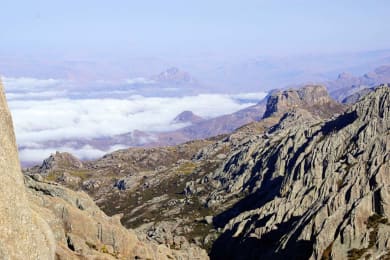 You leave the national park at the beginning of the day to reach the Tsaranoro Valley. A beautiful descent in front of the walls of this massif before reaching the village of Morarano. Then, the ascent of Mount Chameleon remains relatively difficult but allows you to have an overview of the Andringitra massif and the peaks that border the valley. When redescent, it is not uncommon to observe a few lemurs subservient to the sacred forest you pass through. You arrive at the ecolodge in the afternoon for a well-deserved rest against the Tsaranoro. Diner and overnight at the hotel.