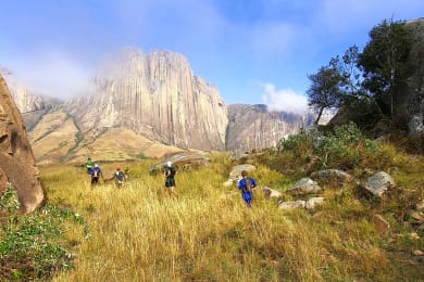 Requirement to complete 03:30 4x4 track to reach the entrance to Andringitra National Park. You find your guide and his porters to start this beautiful first day of hiking in the heart of the park. Start of the walk towards the waterfalls of the massif. The access to the Andriampotsy base located at 2050m is a varied route composed of steps, undergrowth and plain at the end of the route that bring you closer to the granite walls of the massif. The bivouac is ideally chosen and offers you the opportunity to bathe in natural squalls. Diner and overnight stays in a tent.