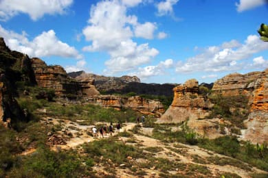 A day of hiking in the Isalo National Park so often dubbed "the Malagasy Colorado". It is a ruiniform massif of yellow sandstone where coexist, rock vegetation (Aloe, Euphorbes, Pachypodium ...) and wildlife in large numbers (lemurs, chameleons, birds and rock reptiles). Throughout the day the landscapes are varied and varied: natural swimming pool, canyons, desert spaces. The time to return to the hotel takes into account your walking pace and your curiosity. Diner and overnight at the hotel.