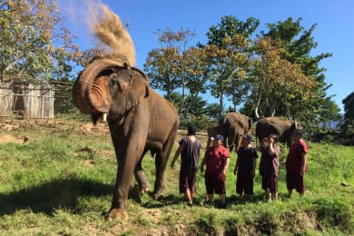After breakfast you’re back into your Tuk Tuk (we guarantee you’ll already be possessive about which Tuk Tuk is ‘yours’!) and you’ll head through the countryside and small communities to a fantastic pagoda at a hill top Temple with great views of the surrounding mountains, giving you a glimpse of where you’ll be heading tomorrow! You’re then heading North up the valley in your Tuk Tuk to a fantastic small elephant home that is leading the way in taking elephants away from a life of trekking and instead creating an environment where people can learn about and spend time with elephants on their terms, not ours! On arrival you’ll learn about the history of the elephants and what the team at the Elephant home have been doing to continually improve the lives of the elephants. Then, after a simple but filling lunch at the home (right next to the elephants), it’s time to enjoy the company of these wonderful animals. You’ll be able to help their mahouts feed them and then walk with them (no riding allowed!) to the local river where they take their daily bath. After the elephants are clean you’ll have a change of pace as you float gently downstream on bamboo rafts before it’s then time for a late afternoon Tuk Tuk convoy as you head back to the base camp to freshen up before heading out for another great dinner at a local family restaurant. • TUK TUK DRIVING TIME: +/- 3.5 HOURS SPREAD OUT OVER THE COURSE OF THE DAY • DISTANCE COVERED: +/- 70 km