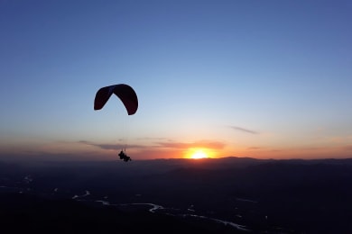 Experience the steppe from a unique perspective, soaring high on a tandem paragliding flight.