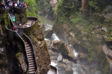 If you are lucky and the weather is good, you might be able to spot the perfectly-shaped cone of Cotopaxi volcano – and other volcanoes in the surroundings – in the morning. After a delicious breakfast, you will continue your journey along what is known as the “Avenue of the Volcanoes” until reaching Baños, one of Ecuador’s outdoor hotspots. After settling into your hotel, start exploring this small town, tucked between towering ridges of mountains and surrounded by ever-flowing waterfalls. Visit for example “Casa del Árbol”, famous for its swing overlooking the valley of Baños and the Tungurahua volcano, or relax a couple of hours in the hot springs. You can also do short hikes in the surroundings, enjoy a coffee at “Café del Cielo” with spectacular views of Baños, or just take a stroll through town and visit the well-known cathedral. Maybe you are up for some salsa dancing in the evening?