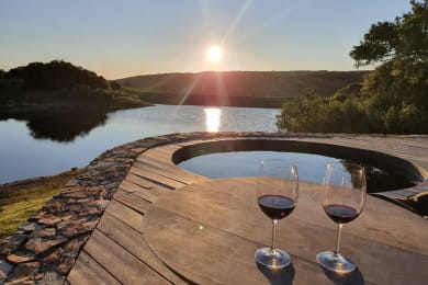 After breakfast in your shelter, enjoy a full-day experience at Sacromonte. You will have your own golf cart to explore the property. There are many things to do like visiting the chapel at the top of the vineyard or the panoramic lookout, which is a small hike up the hill, then taking a lovely walk through the brook, which is like taking a relaxing walk through a small stream surrounded by trees. Upon returning to your shelter take a dip in the splash pool. Lunch with wines will be served at the top of the hill with breathtaking views. Spend the afternoon at your leisure relaxing. Before sunset you will have the option to go horse riding through the vineyards. Dinner will then be served at the shelter with some wine.